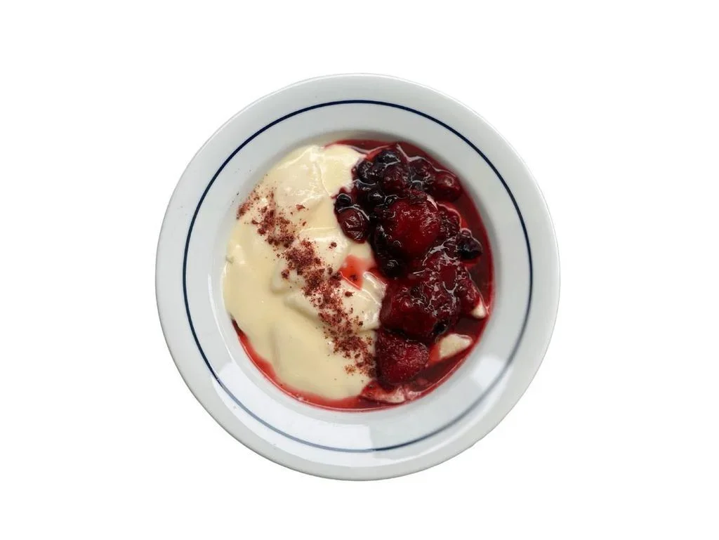 Dumplings macios de queijo cottage, servidos com molho quente e cremoso de leite condensado com um toque de baunilha, finalizados com compota caseira de Frutos do Bosque. Confortantes, leves e delicadamente doces — um clássico de infância.