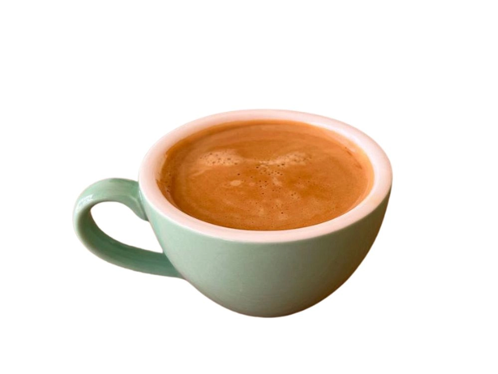 Espresso duplo com água quente, preparado com café de especialidade 100% Arábica.